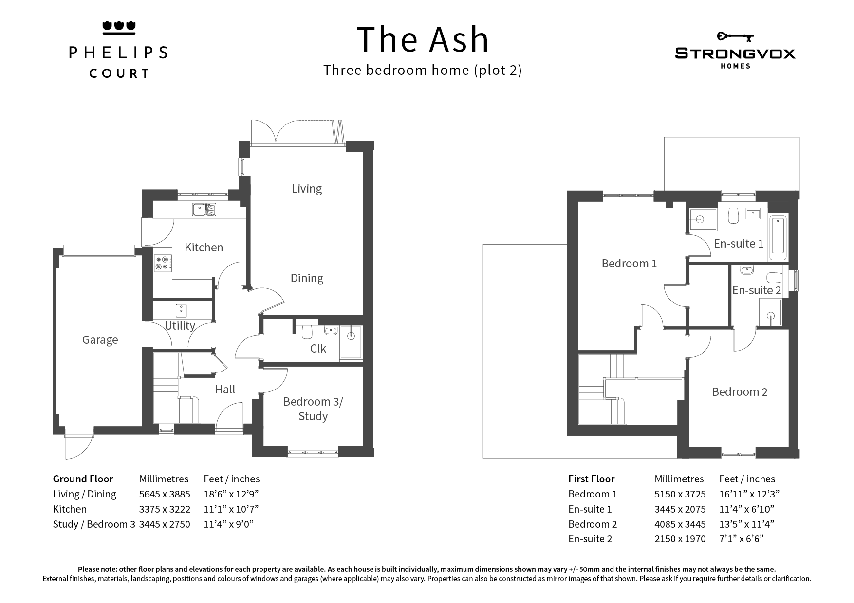 READY JULY 2022. The Ash is a characterful stone built detached three bedroom home with a single garage with additional driveway parking for two cars. The hallway with storage cupboard on the ground floor leads to the living/ dining room (with French doors to rear garden) and generously fitted kitchen with separate utility room. There is also a cloakroom accessed off a large cloaks cupboard. Also on the ground floor is the study/ bedroom three. The turning staircase to the first floor leads to the landing with large wardrobe and two double bedrooms, both of which have their own en-suites, the master having a bath and a shower and bedroom two with a shower.