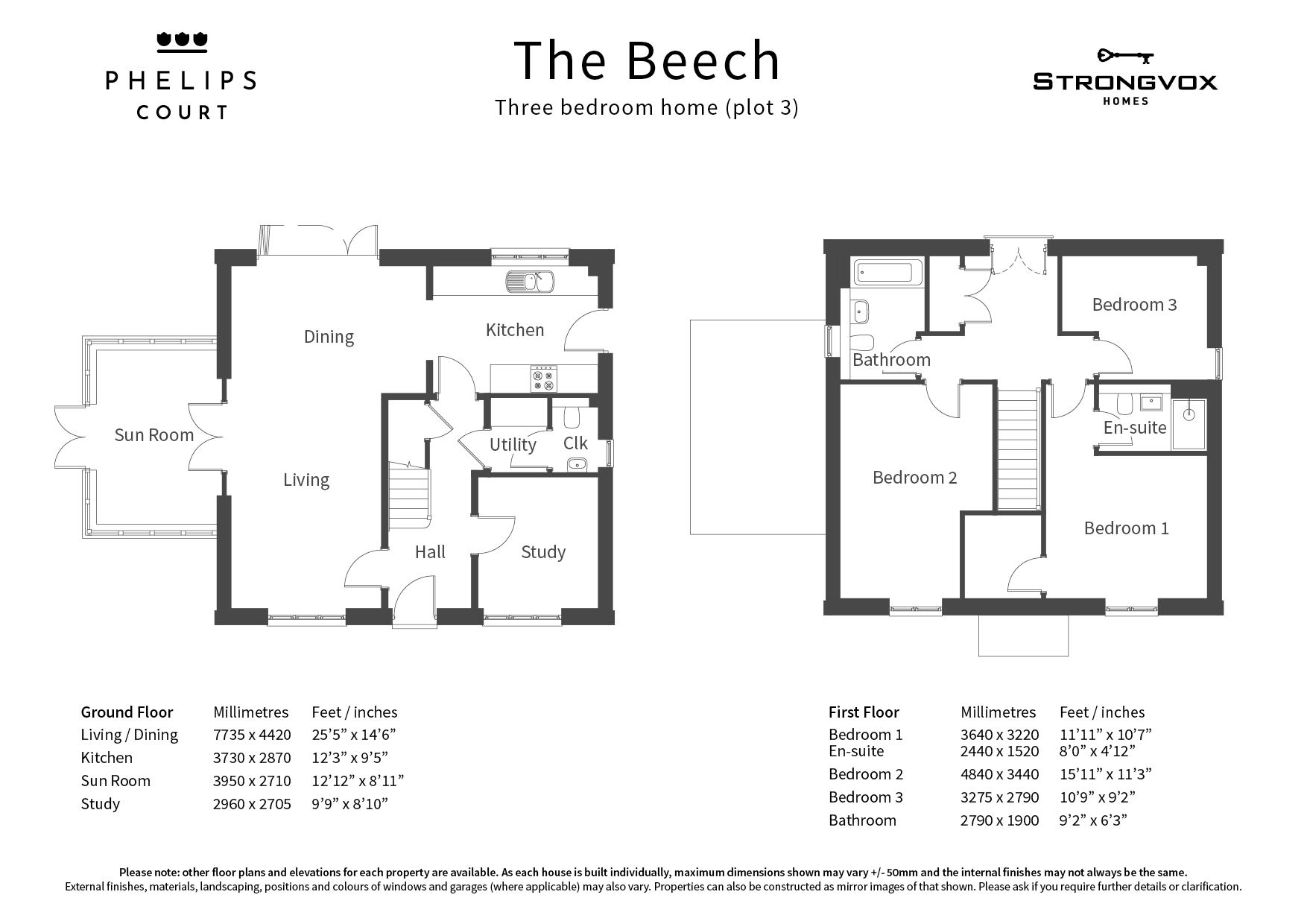 READY JULY 2022. The Beech is an impressive double fronted three bedroom home with garage and additional parking for one car. The hallway on the ground floor leads to the impressive open-plan living room/ dining room with bifold doors to the rear garden. There is a separate sun room with French doors to the rear garden off the living/ dining room. Also off the hallway is the study, utility and cloakroom and the generously fitted kitchen. The turning staircase to the first floor leads to the master bedroom with en-suite shower room, family bathroom and two further bedrooms.