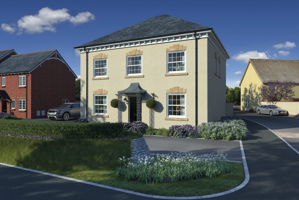 - Beautifully designed new home displaying character and individual features with a white lias stone & beige render external finish, slate roof tiles and grey sash style windows