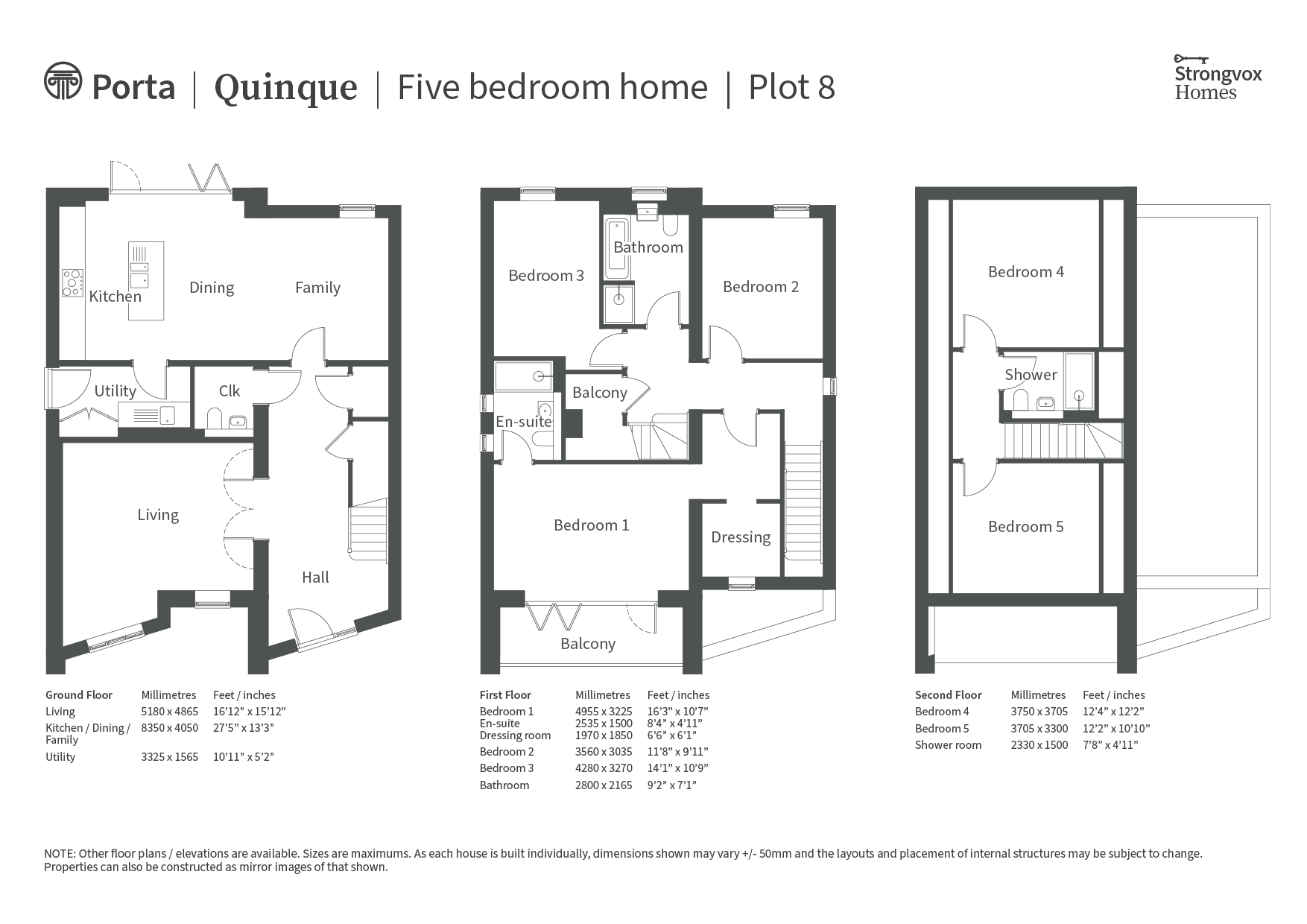 • Utility rooms in ‘Quinque’ homes only, with complementing fitted units and profile worktops to match kitchens, plus space for washing machine and tumble dryer