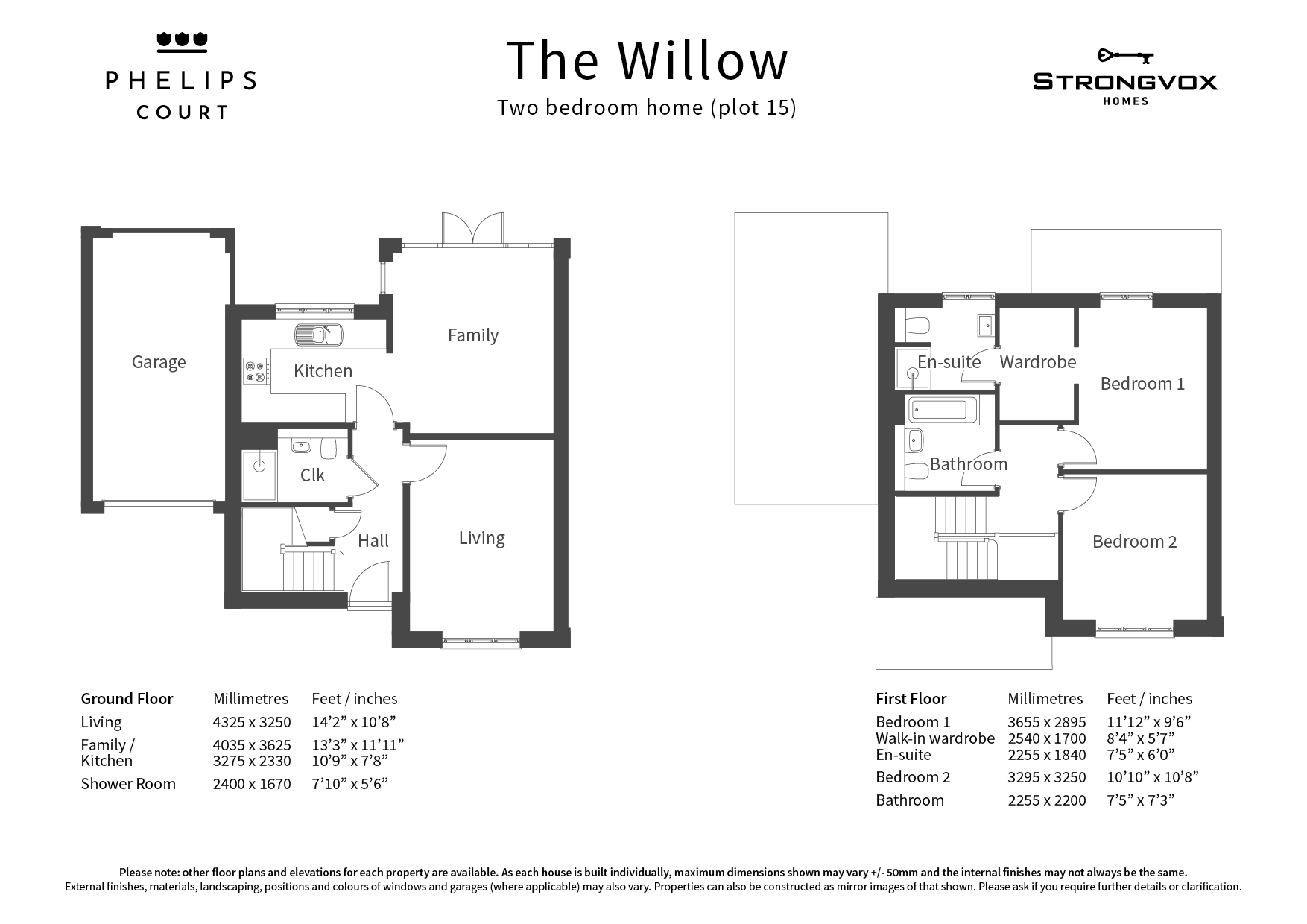The Willow is a very attractive stone built two bedroom home with garage and parking. On the ground floor, the hallway provides access to the kitchen and family room (with patio doors to rear garden), shower room and living room. The turning staircase to the first floor leads to the master bedroom with separate wardrobe/dressing area, which in turns leads to the en-suite bathroom. Bedroom two is also a double off the main landing, as is the family bathroom.